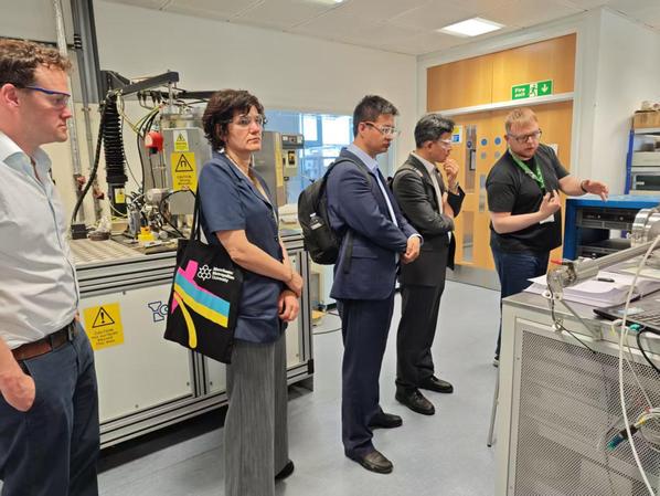 5月1日下午,代表团访问曼彻斯特城市大学。该校自然科学系主任Lindsey Munro、学校国际部项目经理Charlotte Dawson、自然科学系国际事务主管David Beel、自然科学系化学讲师Lubomira Tosheva-Jivkova等热情接待我校代表团。双方共同回顾了合作基础,并针对本硕联合培养项目执行过程中的关键环节展开讨论。外方介绍了国际联合实验室的协议进展情况,对即将赴外方访问交流的我校学生表示期待和欢迎。我校代表团也热忱邀请外方来校交流宣讲。会谈后,我校代表团参观了该校科学与工程学院的燃料电池创新中心(Fuel Cell Innovation Centre)、表面工程实验室和学生教室。