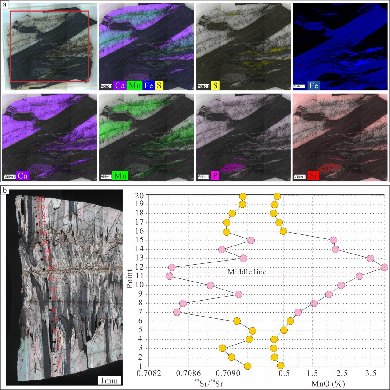 研究团队通过多尺度、多方法耦合研究发现纹层界面两侧矿物成分、排列及尺寸差异导致的力学各向异性是页理缝产生的必要地质前提。脉体微观结构和同位素地球化学分析结果表明顺层方解石脉记录了多期次流体活动,证明页理缝具有显著的幕式开启特征。由生烃超压所引起的垂直渗流力梯度会周期性地突破封闭页岩系统的压力阈值,从而导致薄弱界面的周期性开启,是页理缝的主要形成机制。相对封闭的湖相页岩系统中页理缝的幕式开启显著促进了流体流动和物质交换,影响了成岩演化和排烃,是对沉积盆地多尺度、幕式流体活动的重要响应。
